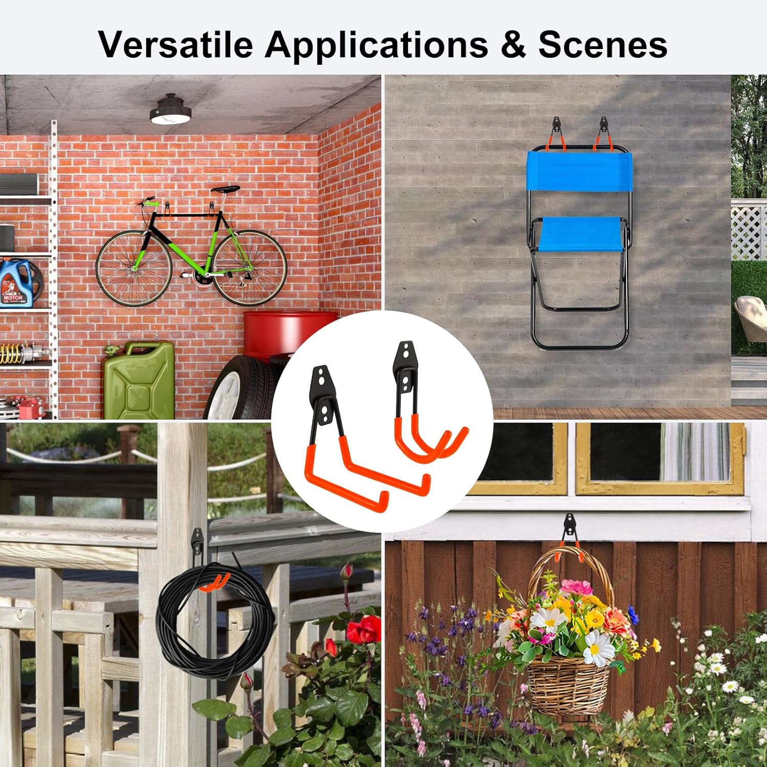 • PVC Rubber Coating & Anti-slip Design: Metal garage hooks with orange rubber-coated design efficiently holding tools against scratches and rust, also anti-slip design preventing tools slipping-off and flaking.